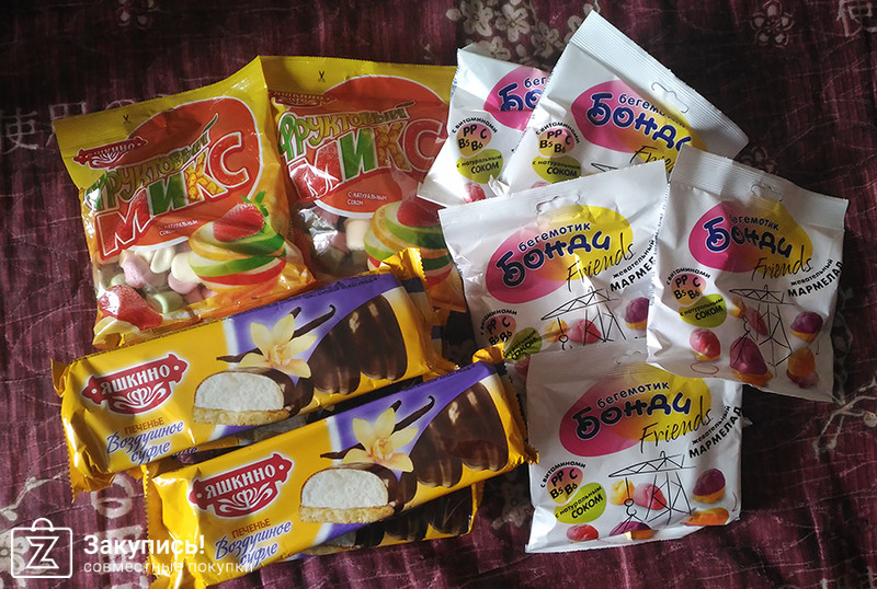 Получила свои три пакета сладостей (мармелад, мини- и простые рулеты, гематоген, вафли, печенье), организатору огромное спасибо за четкую организацию такой сложной закупки!!!!