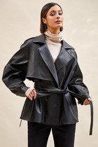 Плащ AURA 7021-170 черный/бежевый