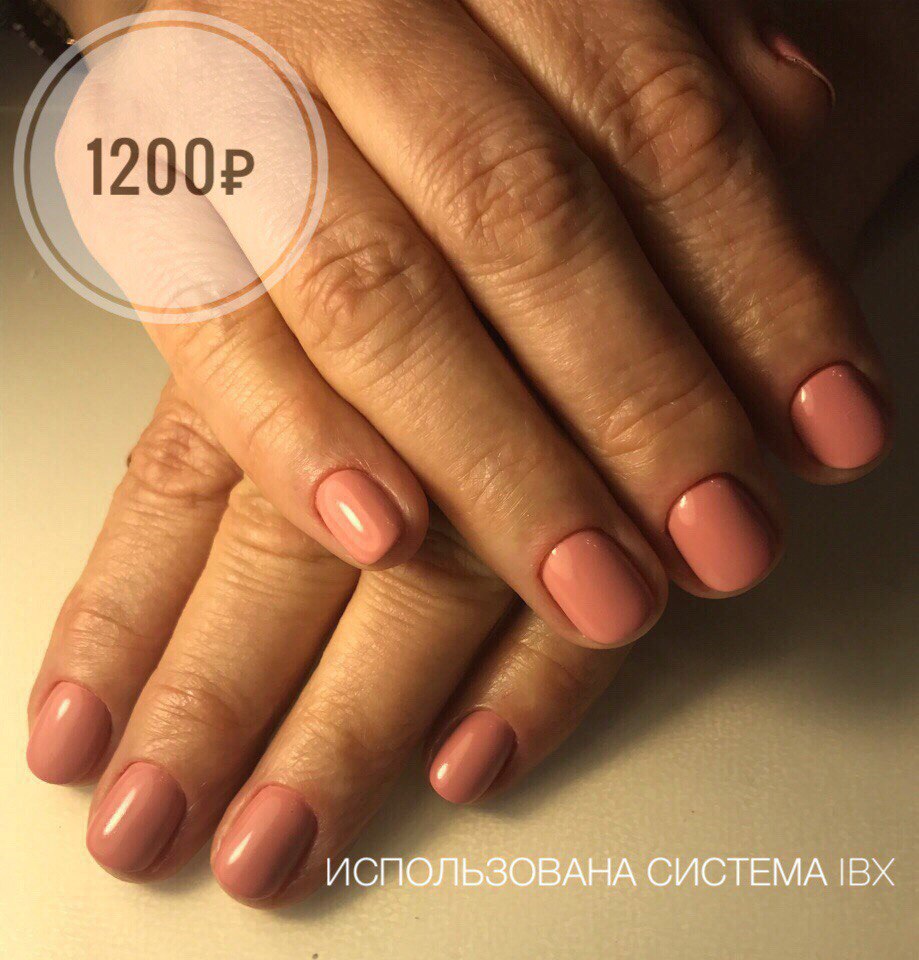 2) Однотонное покрытие ногтей гель-лаком (в стоимость входит маникюр и выравнивание ногтевой пластины) - 900 руб