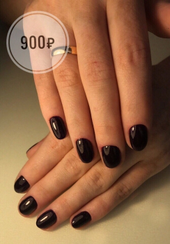 Однотонное покрытие ногтей гель-лаком (в стоимость входит маникюр и выравнивание ногтевой пластины) - 900 рубВСЕГО: 1200руб