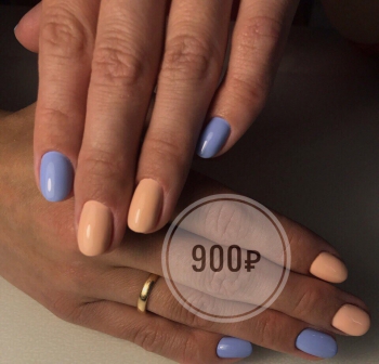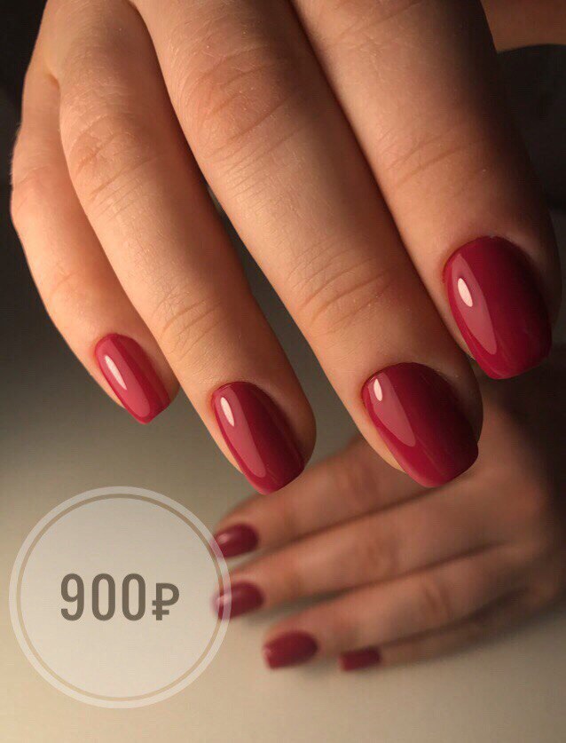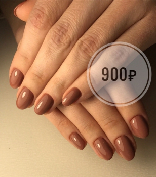 Однотонное покрытие ногтей гель-лаком (в стоимость входит маникюр и выравнивание ногтевой пластины) - 900 рублей