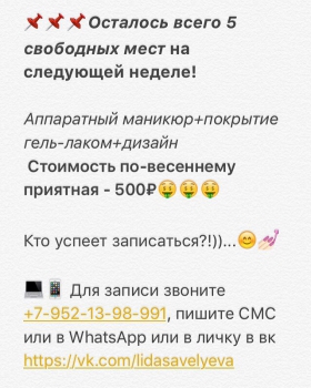 Девочки, каждый раз  перед записью  (ориентировочно за сутки!!!) я отправляю вам так называемую СМС-напоминалку.