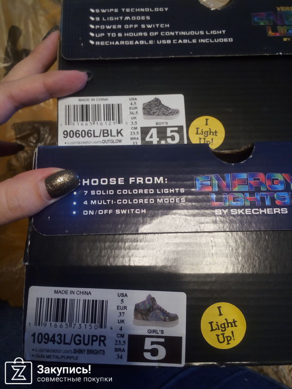 SKECHERS KIDS Energy Lights Limited Edition 90606L (Little Kid/Big Kid) арт: 8963877, размер: 4,5 Big Kid - вышли 2344 р. (доставка чуть больше 700 р.). Тогда они на сайте со скидкой были чуть больше 20 баксов. В спортмастере они сейчас со скидкой стоят 3499 р.