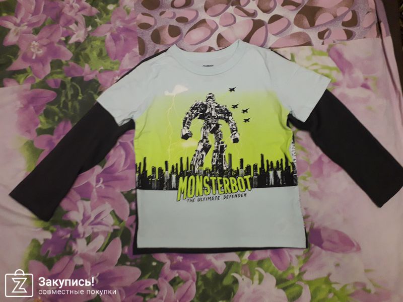 OshKosh. Неужели ни кто не любит светяшки?))) Они ж крутые)) Брала лонги со светящимся в темноте рисунком - любовь обоих сыновей! На моих стройнях идут в размер, брала размер 4 и 2. Футба с роботом размер 5, по параметрам такая же как размер 4, робот и молния светятся в темноте. Футболка с кролей - мягкая, приятная на ощупь. корона, бантик и надпись с блестками, взяла размер 9-12 мес - на далекий вырост)))