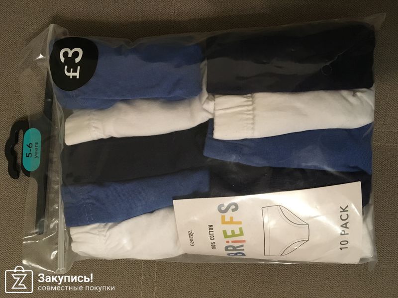Набор трусов Асда 10 шт для мальчика за 3£. В наборе 4 шт. белых, 3 темно-синих и 3 синих. С доставкой вышли 450 руб, вообще красота))) взяла размер 5-6 лет навырост, ребёнок 2.9, вес 13,5 кг, не пухлый, но попастик (сейчас носим трусы 3-4 года). Эти трусики чуть-чуть большеваты в попе и прилично большие в поясе (на 5-6 лет все-таки). По ножкам вообще норм, за счёт резиночек . На ощупь очень приятные, как поведут себя в носке, узнаю позже, думаю, будем носить уже через годик.