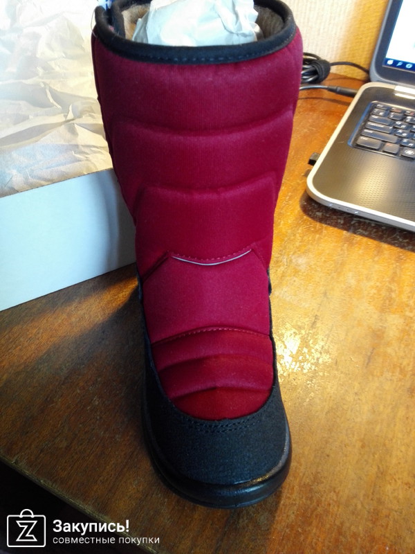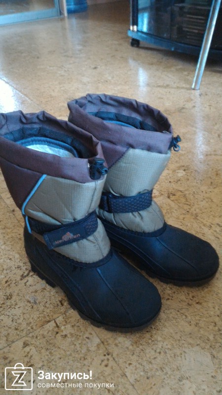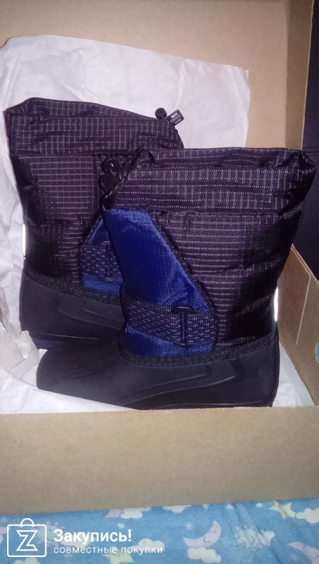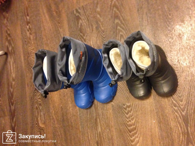 Добавляю фото к отзыву. На фото 2 модели. на мне со съемным меховым сапожком 34/35, на мой 35 впритык с тонким носком. Не знаю смогу носить в -20 или нет, так как впритык. на сыне 22/23 с флисовым вшитым сапожком, сегодня гуляли в лесу в -3, одевали без носка на тонкие колготки, ноги за 2 часа не замерзли. Единственное он еще малыш 1,3, если упадет сам встать не может. Очень легко моются. по его размеру сказать не могу носили 20 впритык, поэтому я думаю у нас есть еще запасик) весна покажет))
