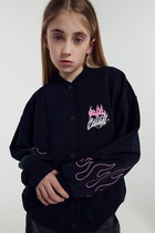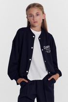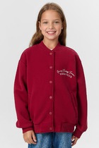 Трикотажный бомбер для мальчика из петельчатого футера. Манжеты и пояс из эластичного трикотажа в рубчик.