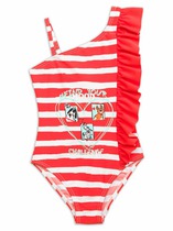 Слитный купальник на лямках для девочки. Украшен оборками. Внутри подклад.— Описание у На сайте поставщика