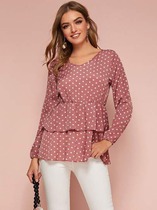 Многоуровневая блузка с баской в ​​горошек