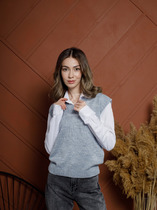 Жилет женскийРазмер: 42-46,48-52Состав: акрил 100%Артикул: w-550Страна производства: РоссияНа фото цвет:светло-серый