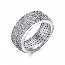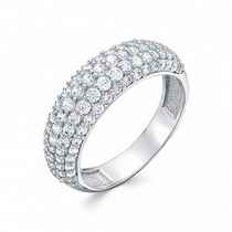 Кольцо (Господи Спаси и Сохрани) из серебра родированное литьё с фианитом
