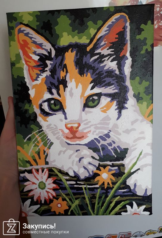 Так как я попала в дозаказ закупки, ждать стопа мне долго не пришлось. Доставка достаточно длительная , но об этом организатор предупреждала. Картину выбирали на сайте , но фактические цвета с фото на сайте не совсем совпадают. Но цена решает все . Качество холста и красок устроило . Выбираем на сайте новые картины