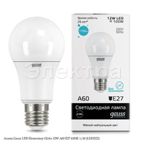 Лампа Gauss LED Elementary Globe 12W A60 E27 4100K 1/40 (23222)