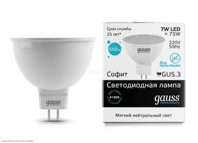 Лампа Gauss LED Elementary MR16 7W 4100K 1/10/100 (13527)