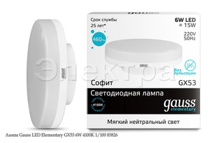 Лампа Gauss LED Elementary GX53 6W 3000K (83816)