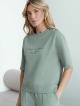 Boyfriend крой, укрепление по горловине спинки, круглый вырез. Горловина рибана. Отстрочка по горловине переда— Описание у На сайте поставщика