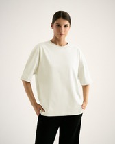 Футболка свободного силуэта. Горловина из рибаны.— Описание у На сайте поставщика