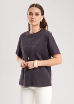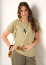 Джемпер из трикотажного полотна пике. Округлая горловина с внутренней обтачкой. Боковые разрезы. По переду принт.