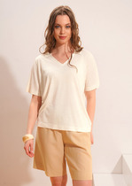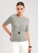 Джемпер-поло прямого кроя из текстильного полотна. Короткий втачной рукав. По горловине отложной воротник.— Описание у На сайте поставщика
