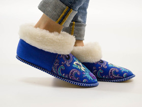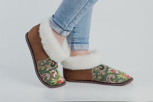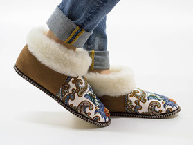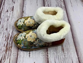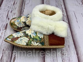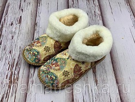 Чуни домашние из овчины, со вставкой из гобелена.— Описание у На сайте поставщика