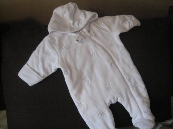 комбезик отличная вещь! у меня у сынишки был подобный, тоже беленький, такой ангелочик мягенький в коляске лежал