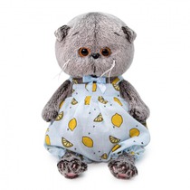 Басик в летнем песочнике нежно-голубого цвета с жёлтыми лимонами. В комплекте маленький голубой бантик из атласной ленты.