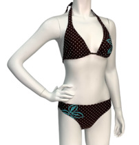 Темный купальник в мелкий горох с бирюзовым принтом