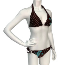 Коричневый купальник в белый горошек