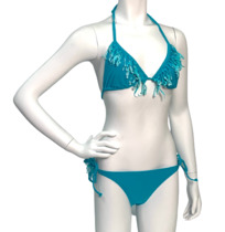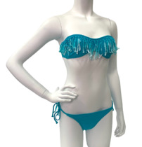 Бирюзовый купальник с бахромой на лифе