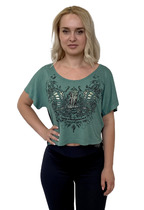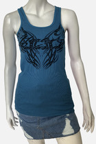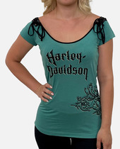 Бирюзовая женская футболка Harley-Davidson – тесьма на плечах, асимметричный при