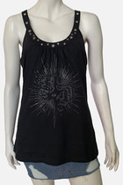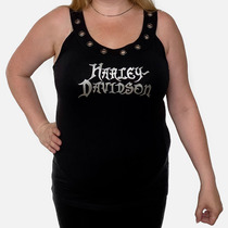 Женская майка Harley-Davidson с люверсами – широкие бретели, серебристый принт-о