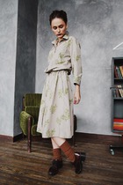 Платье оливковое с мимозами