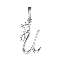 Серебряная подвеска " Буква Ю " с бесцветными фианитами - 297