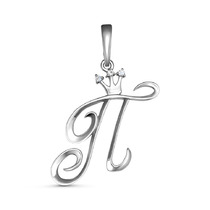 Серебряная подвеска "Буква П" с бесцветными фианитами - 165