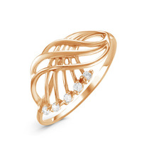 Позолоченное кольцо с бесцветными фианитами - 083 - п