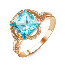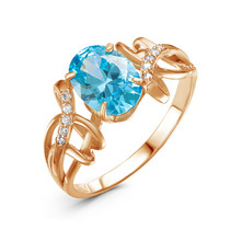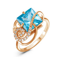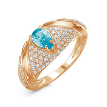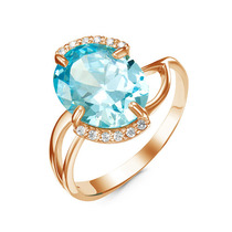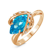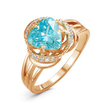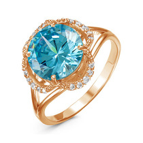 Позолоченное кольцо с фианитом голубого цвета - 211 - п