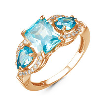 Позолоченное кольцо с фианитами голубого цвета 322 - п