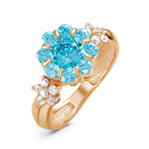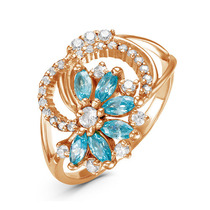 Позолоченное кольцо с фианитами голубого цвета 106 - п