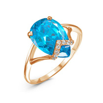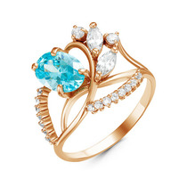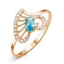 Позолоченное кольцо с фианитом голубого цвета 330 - п