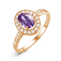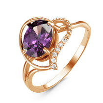 Позолоченное кольцо с фианитом фиолетового цвета 003 - п