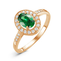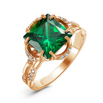 Позолоченное кольцо с фианитом зеленого цвета 015 - п