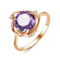 Позолоченное кольцо с фианитом фиолетового цвета 026 - п