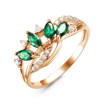 Позолоченное кольцо с фианитами зеленого цвета 004 - п