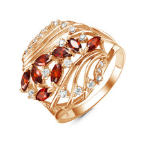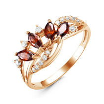 Позолоченное кольцо с фианитами цвета гранат 004 - п
