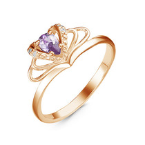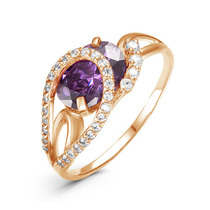 Позолоченное кольцо с фианитом фиолетового цвета - 001 - п