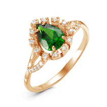 Позолоченное кольцо с фианитом зеленого цвета 330 - п