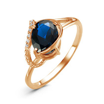 Позолоченное кольцо с фианитом синего цвета 026 - п