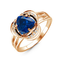 Позолоченное кольцо с фианитом синего цвета 015 - п