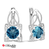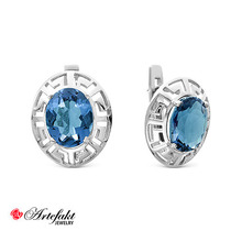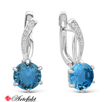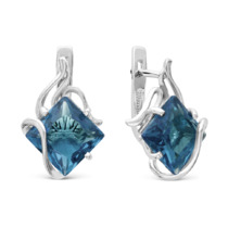 Серебряные серьги с фианитами цвета лондон-топаз - 079