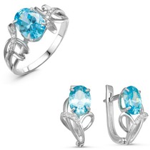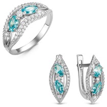 Серебряный гарнитур с фианитами голубого цвета - 219